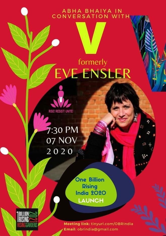 V will be addressing the India partners in a conversation with Abha Bhaiya, OBR India Coordinator {& feminist activist and Founder, Jagori Grameen} We hope her insight into narrative building and transmedia resistance can help us plan this year’s campaign effectively.
